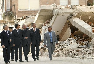 víctimas del terremoto junto al presidente de la Región de Murcia, Ramón Luis