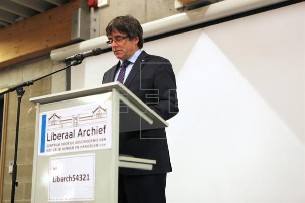 Puigdemont ha intervenido telemáticamente en la reunión de trabajo que los candidatos y diputados del PDeCAT han celebrado en Vilafranca del Penedès (Barcelona), después de que el juez Llarena denegara ayer tanto la libertad solicitada por Sànchez como el permiso para poder asistir al pleno del próximo día 12, que finalmente fue suspendido. EFE