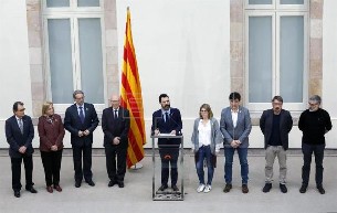 Torrent ha lanzado esta propuesta en el auditorio del Parlament, después de finalizar el debate que se ha producido en el pleno de la Cámara y ante un foro exclusivamente soberanista, tras no poderse celebrar la segunda votación de la investidura de Jordi Turull al estar encarcelado por orden del juez del Tribunal Supremo Pablo Llarena. EFE