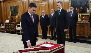 El líder del PSOE, Pedro Sánchez, ha prometido hoy ante el Rey el cargo de presidente del Gobierno, en un acto en el Palacio de la Zarzuela en el que la novedad ha sido que por primera vez en democracia lo ha hecho ante la Constitución pero sin presencia de la Biblia y del crucifijo.