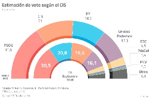 Vozpópuli. El PSOE vuelve a liderar las encuestas en intención de voto. El barómetro del Centro de Investigaciones Sociológicas(CIS) correspondiente al mes de octubre mantiene a los socialistas en primera posición desde que llegaron al Gobierno en el mes de junio tras la moción de censura a Mariano Rajoy. Y, lo que es casi más importante, el PP se ve desbancado del segundo puesto por Ciudadanos.