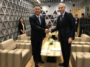 O conselleiro de Economía, Emprego e Industria, Francisco Conde –que acompaña a 14 empresas galegas do sector agroalimentario na feira de importacións máis importante do mundo– reuniuse hoxe en Xangai co presidente da Cámara de Comercio para a Importación e Exportación de Maquinaria e Produtos Electrónicos de China, Zhang Yujing, con quen asinou un memorando de colaboración para afianzar as relacións comerciais entre Galicia e o país asiático.