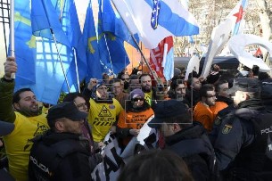 El grueso de los manifestantes, a los que también se han unido colectivos como la Coordinadora de Pensionistas, han llegado en quince autobuses desde Avilés y en tres desde Galicia para pedir el mantenimiento de ambas plantas, que Alcoa quiere cerrar y en las que trabajan en total 686 trabajadores.