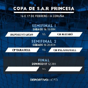Patrocinado por el Hotel Crunia | La ciudad coruñesa será la sede de una nueva edición de la Copa Princesa de hockey sobre patines, que se disputará este sábado y domingo, en la Palacio de los Deportes de Riazor: Deportivo Liceo B, que ejerce de anfitrión, CH Mataró, CP Taradell y Corredor Mató CH Palafrugell, lucharán por el trofeo.
