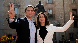 acto en la Plaza de la Villa de Madrid que han protagonizado la propia Arrimadas y el presidente de Ciudadanos, Albert Rivera, por quien la catalana ha dicho que "se dejará la piel para que sea el nuevo presidente de Gobierno".
