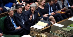votos en contra, prorrogar el "brexit" hasta el 22 de mayo, si