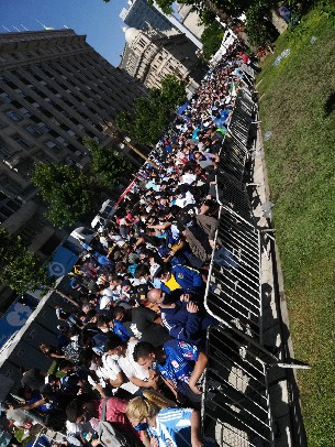 ROMINA LEMA / BUENOS AIRES | Una multitud de personas mantuvo una vigilia nocturna en la Plaza de Mayo hasta la apertura del velatorio previsto desde las 6 de la mañana. A pesar de las altas temperaturas y el riesgo de contagio del virus más de medio millón de personas se acercaron a la Casa de Gobierno para despedir al ídolo. El presidente de Argentina, Alberto Fernández, decretó tres días de duelo y durante la ceremonia se acercó para dejar sobre el ataúd un pañuelo blanco de las Madres de Plaza de Mayo y una camiseta del club Argentino Juniors. El cortejo se realizó a cajón cerrado y está previsto que esté abierto al público hasta las 16:00 horas.