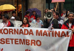 Cientos de profesores, convocados por CIG-Ensino, se concentraron en las principales ciudades gallegas con objeto de reclamar a la Consellería de Educación que mantenga la jornada lectiva continuada reducida en los meses de junio y septiembre. Las protestas se desarrollaron en A Coruña, Ferrol, Lugo, Burela, Ourense, Vigo, Pontevedra y Santiago y al finalizar cada una de ellas se leyó un comunicado en el que el sindicato señaló que seguirá adelante con su reivindicación, advirtiendo que, de acuerdo con la consulta que se está realizando entre el profesorado, se cuentan por miles los apoyos. En Santiago, donde se concentraron cerca de cien docentes en la Praza do Toural, el delegado nacional de CIG-Ensino, Anxo Louzao, indicó que frente a la circular enviada por Educación a los centros para que procedan a solicitar la modificación de la jornada escolar, el sindicato tiene en marcha una campaña para que los colegios hagan la propuesta en orden a cuatro horas lectivas y no a las cinco que pretende la consellería para los meses de junio y septiembre. Al cierre del acto, Louzao leyó un comunicado y dejó constancia de que la circular enviada por la Administración educativa a los centros "liquida" la jornada reducida y no garantiza la continua. Dijo además que la "imposición" de la jornada por parte de Educación, rechazada por el profesorado en la huelga del pasado 3 de mayo, "volve a ser rexeitada agora meidante a consulta que estamos facendo en todos os centros". El sindicalista refirió que la verdadera conciliación de la vida laboral y familiar no depende de la ampliación del horario lectivo, ni de extender la jornada partida a todo el curso escolar, sino de que los centros estén dotados de servicios complementarios, actividades extraescolares y del personal no docente preciso. Dijo además que la enseñanza de infantil y primaria tienen en Galicia un horario lectivo superior a los países del entorno y que tras reunirse la mesa sectorial para fijar los nuevos cuadros de personal laboral y lectivo del profesorado, la propuesta inicial de la consellería coincide con la presentada el pasado 27 de marzo, "algo totalmente inaceptábel para CIG-Ensino", concluyó.