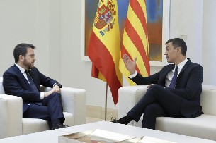 Sánchez y Aragonés han mantenido en el Palacio de la Moncloa una reunión que no ha llegado a las dos horas y que estaba pendiente desde que hace dos meses la solicitó el presidente de la Generalitat para aclarar las escuchas a dirigentes independentistas mediante el sistema Pegasus. Tanto por parte de Moncloa como de la Generalitat se había avanzado que el objetivo era normalizar la relación tras esa crisis, pero que no es esperaba que de ella saliera una fecha para citar a la mesa de diálogo.
