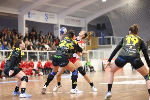 Desde la dirección de Patrícia Lima, el conjunto miñoto fluyó en ataque con la electricidad de Pauli Fernández y el devastador poder destructivo de Sandra Santiago, que se fue a la decena de goles. Imparables. En defensa, un 6:0 profundo y agresivo limitaba el poderío en el lanzamiento exterior de las jugadoras visitantes, que con una media de 1,80, apostaban por la fuerza tanto en ataque como en defensa.