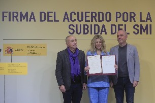En el acto de firma del acuerdo, del que se descolgaron las patronales CEOE y Cepyme, Díaz ha agradecido el compromiso de los sindicatos “con su país” y ha animado a los trabajadores que aún no cobran este salario a “que defiendan sus derechos”.