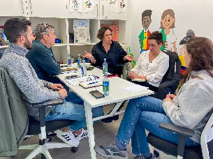 Hoy, la concejala de Cohesión Social, Marta Figueroa; la jefa de sección de Servicios Sociales Básicos de la Administración y trabajadora social, Sandra García y el técnico municipal del área de Servicios Sociales, Iosu López, se reunieron con trabajadores de la oenegé para conocer más de cerca los proyectos que lleva a cabo la entidad, y que atiende anualmente a 440 personas en Culleredo, donde además se encuentra su sede.