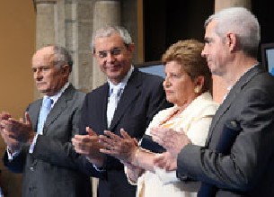Finalmente, recogió su medalla Francisco Rodríguez Iglesias, director de Hércules Edicións y del Proxecto Galicia. Se trata, a juicio de Touriño, de una empresa "que foi capaz de poñer en marcha esa arriscada e espléndida iniciativa editorial, hoxe presente en miles de fogares galegos". Se trata del Proxecto Galicia, cuyo mérito está no sólo en "ter chegado con éxito aos 50 volumes", sino también en que "un emprendedor fose capaz de atreverse a converter o seu soño nunha vizosa realidade". Porque Francisco Rodríguez Iglesias, añadió Touriño, es "un deses soñadores que todos os pobos necesitan para ir máis alá".