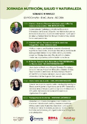 REDACCIÓN | El sábado 8 de marzo, dentro de la programación de BioCultura A Coruña 2025, en EXPOCoruña, en el espacio Ágora, se llevará a cabo la Jornada Nutrición, Salud y Naturaleza. Ponentes de prestigio internacional nos hablarán de cómo mantener la salud en un mundo enfermo y de cómo mantenernos lo más alejados posible de todo aquello que contamina, desequilibra y distorsiona. Abajo tenéis el programa entero con horarios y toda la información.