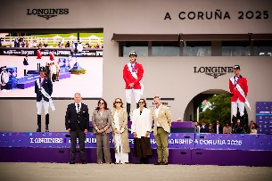 Stephan Ellenbruch, responsable de la disciplina de Saltos de la Federación Ecuestre Internacional, impuso las medallas a los tres mejores del campeonato, acompañado por Flora Pérez, en representación del Centro Hípico Casas Novas y Elena Orozco, Brand Manager de Longines España, que entregó un reloj de la marca al campeón.