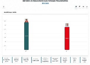 Paz obtuvo ese porcentaje frente a un 45,43 % del exmandatario conservador Jorge Tuto Quiroga (2001-2002), según los datos del Sistema de Transmisión de Resultados Preliminares (Sirepre) ofrecidos esta noche por el TSE, con el 97,68 % de las actas computadas.