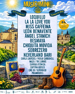 REDACCIÓN | Loquillo, La La Love You, León Benavente y Miss Cafeína lideran el impresionante cartel de Musicamino 2026 en lo que supone la tercera edición de este festival que mezcla la música y la enología en el marco del Camino de Santiago y que se celebrará en Villafranca del Bierzo los días 6, 27 y 28 del próximo mes de junio.