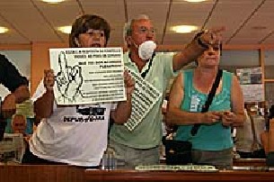 Una treintena de vecinos de la parroquia viguesa de Coruxo, afectados por la ampliación de la Estación Depuradora de Aguas Residuales (EDAR), ubicada en la desembocadura del río Lagares, irrumpieron este lunes en el pleno del Ayuntamiento de Vigo interrumpiendo la celebración del mismo. Al poco de comenzar la sesión plenaria y coincidiendo con el turno de palabra del ex concejal de Medio Ambiente, José Manuel Figueroa (PPdeG), los vecinos comenzaron a lanzar fruta contaminada que nace en los árboles de sus huertas y agua sin depurar que portaban en botellas. De este modo, el alcalde vigués, Abel Caballero, se vio obligado entonces a suspender el pleno municipal, se reanudó pasadas las 10.00 horas. Los vecinos de esta zona de Vigo, próxima a la playa de Samil, llevan años protestando por el mal funcionamiento de la estación depuradora, situación que origina malos olores constantes en sus casas. Además, están en contra de la ampliación de la actual planta de tratamiento de agua para convertirla en una macrodepuradora en terrenos anexos a la EDAR actual. Críticas al PP Al finalizar el pleno, el alcalde de Vigo, Abel Caballero, calificó de "antidemocrática" y "decisión grave" la actitud de los concejales del PPdeG en el gobierno municipal vigués tras abandonar el pleno de la corporación al no estar de acuerdo con el procedimiento seguido por PSdeG y BNG para realizar una modificación de crédito de más de 14 millones de euros. En esta sesión plenaria se aprobó, con los votos favorables de socialistas y nacionalistas, una modificación presupuestaria de 14,3 millones de euros para afrontar "deudas por valor de 11 millones contraidas por el anterior gobierno", en palabras del PSdeG. En rueda de prensa posterior al pleno, el regidor socialista lamentó que "la primera intervención plenaria de la señora Porro" fuese utilizada por ésta "para instar a su grupo a abandonar el pleno". A juicio de Caballero, la ex alcaldesa "demostró un grave desconocimiento del procedimiento" porque, detalló, "después de esta aprobación, la modificación presupuestaria tiene que ser publicada en el Boletín Oficial de la Provincia, darle 15 días de publicidad a efectos de alegaciones y a partir de ahí tiene que volver al pleno". Por su parte, el viceportavoz del PPdeG, José Manuel Figueroa, acusó a Caballero de ?ocultismo" y "falta de transparencia". ?Está mintiendo a la ciudad, es usted un mentiroso", aseveró Figueroa en el transcurso de la sesión plenaria. Mientras, el teniente de alcalde, Santiago Domínguez Olveira se mostró partidario de "falar das cousas que aquí se debaten" y lamentó "que o PP empece esta legislatura buscando a foto única e exclusivamente sin tan siquera dar a oportunidade a este goberno de explicar esta modificación". El portavoz socialista, Carlos López Font, espetó a los populares que "las elecciones han pasado, no estamos preocupados por ustedes sino por su forma de hacer". "Los ciudadanos tienen que estar preocupados al comprobar que ni cien dias le han dado a este gobierno y parece ser que esta legislatura van a ser cuatro años de obstrucción", criticó el portavoz del PSdeG, quien calificó de "desprecio a la ciudadania" que el PP abandonase la sesión plenaria.