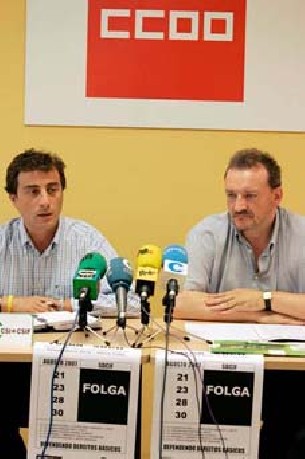 Los sindicatos CC.OO y CSI-CSIF presentaron en Santiago el nuevo calendario de movilizaciones del personal que integra el Servizo de Defensa contra Incendios Forestais (SDCIF). Las dos centrales han convocado cuatro jornadas de huelga, los días 21, 23, 28 y 30 de agosto. Estos paros se sumarán a los dos realizados en julio ?19 y 31.