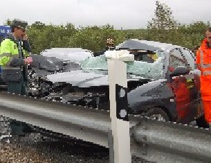 El turismo Citroën Xsara, conducido por V.B.R., de 26 años y vecino de Vilagarcía de Arousa, colisionó contra el automóvil C-4. En el primer vehículo también iba M.C.F., una mujer de 24 años y vecina de Monforte de Lemos. Los dos jóvenes ocupantes del Citroën Xsara fallecieron a causa del impacto. Ambos fueron trasladados al Hospital Provincial de Conxo. Las asistencias médicas nada pudieron hacer por salvarles la vida.