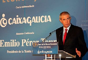 El titular de la Xunta realizó estas afirmaciones tras un almuerzo en el Hotel Ritz de Madrid, ante un foro compuesto por unas 250 personas, entre las que se encontraban empresarios como los presidentes de ACS, Florentino Pérez; y de Martinsa, Fernando Martín; el vicepresidente de Acciona, Juan Ignacio Entrecanales; el consejero delegado de Unión Fenosa, Honorato López Isla; el presidente de la Sociedad Española de Participaciohes Industriales (SEPI), Enrique Martínez Robles; y el director general de Caixa Galicia, José Luis Méndez.