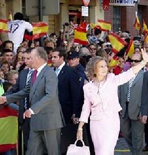 Miles de personas con banderas españolas y entonando vítores como "Ole, ole, ole somos españoles" recibieron en la Plaza de África de Ceuta a Don Juan Carlos y Doña Sofía en su primera visita a la ciudad autónoma en sus 32 años de reinado. Ante la sede de la Comandancia General, desde la que se divisan las aguas del Estrecho, el presidente del Gobierno de Ceuta, Juan Jesús Vivas; el delegado del Gobierno, Jenaro García-Arreciado, y el comandante general de la plaza, general de división Enrique Vidal del Oño, dan la bienvenida oficial a los Reyes, que han llegado acompañados por la ministra de Administraciones Públicas, Elena Salgado. El Rey Juan Carlos ha reconocido nada más llegar a Ceuta, que "tenía un compromiso pendiente" con esta ciudad, "con los ceutíes y con sus autoridades, pero también con nosotros mismos como Reyes que se deben, ante todo, a todos los españoles". En su intervención en el salón del Pleno del Ayuntamiento, donde se celebró el acto central de esta primera visita a la Ciudad Autónoma, que le ha entregado las llaves de la ciudad al monarca, Don Juan Carlos ha subrayado el "espíritu de integración y convivencia" de Ceuta, que mira al futuro con confianza. Después de asegurar que ha seguido siempre muy de cerca la evolución de esta ciudad de historia y cultura milenarias, el Rey ha manifestado su satisfacción por poder comprobar la modernidad de Ceuta, "que ha sabido crecer y prosperar en el marco de pluralismo y democracia que define España". El presidente defiende la "normalidad" de la visita Por su parte, el presidente de Ceuta, que ha intervenido antes de entregar al monarca la llave de la ciudad, ha asegurado que este hecho "histórico" debe de ser valorado desde la normalidad, "porque sus Majestades han cruzado el Estrecho pero no han salido de España". Ha tenido el presidente palabras de reconocimiento para el papel del Rey en la transformación de España en los últimos 30 años y ha destacado que se trata de "un jefe de Estado que es modelo de equilibrio, de cercanía, de moderación y de amor a España y que es, sin duda, la figura más importante de nuestra historia contemporánea". Vivas ha resaltado que esta visita institucional llena "de satisfacción a todos los ceutíes, cualquiera que sea su edad, origen o afinidad ideológica; un acontecimiento capaz de unirnos y, por tanto de hacernos más fuertes" y que, además, supone "inyectar en el ánimo" de sus habitantes "una elevada dosis de optimismo y de confianza", porque Ceuta ha estado desde siempre vinculada a España. Ha manifestado que esta ciudad que se ubica en el norte de África es un modelo de diálogo, entendimiento y convivencia, en donde se demuestra que las distintas culturas pueden aceptarse, conocerse y quererse, donde el respeto y la tolerancia como normas habituales de conducta. Después de aclarar que Ceuta es solidaria y "que demanda solidaridad del resto de la Nación" ha expresado la lealtad de los ceutíes a la Corona y ha concretado que cuando se dice "Viva Ceuta, estamos también diciendo Viva España y Viva el Rey".