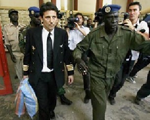 En sus breves palabras, el piloto tuvo expresiones especiales de agradecimiento al cónsul español en Camerún, Vicente Mas, que se ocupó de ellos desde el comienzo y que, desde que le fue permitido, visitó a diario a los españoles mientras estaban detenidos. También agradeció el apoyo que habían recibido de los medios de comunicación españoles.