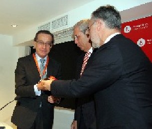 El presidente de la Xunta, Emilio Pérez Touriño, y el decano del Colegio de Economistas, Roberto Pereira, participaron en el acto de entrega del galardón a Méndez, celebrado tras la inauguración por parte del titular del Gobierno gallego de las nuevas instalaciones de esta entidad en A Coruña.