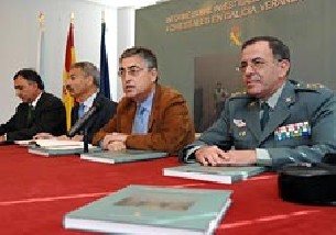 Los incendios registrados en los últimos días en el macizo ourensano han obligado a la Guardia Civil a pedir efectivos de fuera de Galicia. Cuarenta agentes reforzarán el dispositivo de lucha contra el fuego en las comarcas que designe Medio Rural y un helicóptero tendrá dedicación exclusiva. Así lo ha anunciado el general jefe de zona de la Guardia Civil, Manuel Ferreiro, durante la presentación del informe sobre la ola de incendios del pasado verano. Pese a este repunte de los fuegos debido a la sequía y a la quema de pastos, el general Ferreiro es optimista sobre la posibilidad de que en Galicia no se repita una ola de incendios como la del verano de 2006. Está convencido de que la mejora en las técnicas policiales y en la coordinación con los medios de la Xunta ?tiene que dar buen resultado a la fuerza?. El informe editado por la Diputación de A Coruña recoge la investigación realizada por la Guardia Civil sobre la ola de incendios y se ha convertido en un modelo referencial para otras comunidades. Según adelantó el fiscal jefe del Tribunal Superior de Xustiza de Galicia, Carlos Varela, la propia Fiscalía General del Estado de Medio Ambiente ha adoptado la investigación desarrollada por la Guardia Civil en Galicia como modelo para las fiscalías de toda España. Varela valoró la aportación de la experiencia portuguesa, que había sufrido una ola de incendios en 2002, en la investigación de la Guardia Civil, y aventuró que ?nunca estaremos libres de incendios?, pero cree que se puede aprender mucho de la experiencia vivida, recogida en este libro. El fiscal recuerda que el informe descarta la existencia de tramas organizadas detrás de los incendios y de él se deriva la necesidad de abordar reformas del Código Penal para endurecer las penas mínimas y poder sancionar a personas jurídicas implicadas en los fuegos. Varela ha hecho hincapié en que las medidas de prevención pasan por la sivicultura, un ?despliegue disuasorio? de las fuerzas de seguridad en en épocas de riesgo, la persuasión en la demanda de colaboración vecinal y la adopción de las nuevas tecnologías en la lucha contra los incendios forestales.