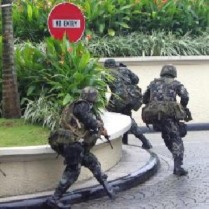 Después de la intervención de las fuerzas especiales, que irrumpieron con un vehículo blindado en la entrada del vestíbulo del Hotel Península en medio de una nube de gases lacrimógenos, incidente en el que resultaron heridas dos personas, el general Danilo Lin y el oficial del Ejército y senador Antonio Trillanes, que encabezaban el motín, indicaron que han adoptado esa decisión con la finalidad de evitar la pérdida de vidas humanas.