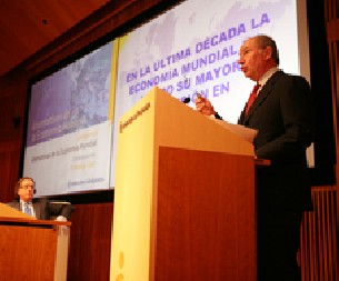 El ex director gerente del Fondo Monetario Internacional (FMI) y ex vicepresidente del Gobierno con José María Aznar, Rodrigo Rato, ha alertado en A Coruña de las posibles consecuencias de orden mundial que podría originar la desaceleración del crecimiento económico en los Estados Unidos. En una conferencia pronunciada en la Fundación Caixa Galicia y titulada "Alternativas de la economía mundial", Rato ha explicado que en un momento en que la economía ?parecía abocada a una desaceleración suave de los países desarrollados?, se ha experimentado ?una desaceleración considerable en el crecimiento? que, según las proyecciones para los Estados Unidos, apuntan a un descenso desde el 3,4% de 2006 al 1,9% en 2008. En opinión del ex director del FMI, esta situación obliga a las autoridades económicas y monetarias a adoptar medidas radicalmente distintas a las que preveían a principios de año. Rato ha recordado que, en los últimos meses, han ?estallado de forma súbita? muchos de los riesgos que ya se percibían en la economía mundial, como los problemas de financiación de la economía estadounidense, su falta de ahorro, la depreciación del dólar, la creciente dependencia energética del mundo desarrollado o la amenaza inflacionista. El ex director del FMI ha añadido que uno de los cambios más importantes registrados en los últimos tiempos, ?con consecuencias a nivel económico y político, es que la economía y el crecimiento mundial han dejado de tener como único motor a Estados Unidos?. Rato se ha referido como nuevos motores de la economía mundial a países como China, India, Sudáfrica, Brasil o Rusia, y ha señalado que, por primera vez en la historia, este año China será el principal contribuyente al crecimiento económico mundial, con un espectacular crecimiento que en los nueve primeros meses llegó al 11,5%. Pese a esta favorable reducción de la dependencia que la economía mundial ha experimentado históricamente respecto a la estadounidense, el que fue vicepresidente del Gobierno ha advertido de que, si no se ataja de forma apropiada la crisis financiera de los últimos meses ?puede acelerar la pérdida de dinamismo general de la economía mundial?, el contagio al resto de las economías será inevitable y frenará el crecimiento de esos países que ahora actúan como motor de recambio del crecimiento mundial. En su opinión, se requieren actuaciones políticas y reformas económicas más allá de las puramente monetarias, que sólo atienden a las bajadas o subidas de los tipos de interés. Entre esas reformas, Rato se ha referido a la necesidad de hacer frente al envejecimiento de población que experimentan la mayor parte de los países más avanzados y de emprender actuaciones encaminadas a mejorar el clima empresarial y la competitividad mundial para afianzar las perspectivas de crecimiento. Respecto a los países de mercados emergentes, el ex director del FMI ha afirmado que ?deben esforzarse más por impulsar reformas de mercado, sobre todo en la supresión de obstáculos a la competencia?, y ?deben asumir sus nuevas responsabilidades como actores económicos mundiales de primera fila?, tal y como reclaman las autoridades europeas y estadounidenses a China cuando le piden que revalúe su moneda. ?Le están pidiendo -ha señalado- que midan el impacto de sus decisiones sobre el conjunto de la economía mundial?. A la conferencia de Rodrigo Rato acudieron personalidades como los anfitriones del acto, Mauro Varela y José Luis Méndez, presidente y director general de Caixa Galicia, el presidente del Gadisa, Roberto Tojeiro, el presidente de la Cámara de Comercio de A Coruña, José Antonio Quiroga, el presidente en funciones del Tribunal Superior de Xustiza de Galicia, Antonio González Nieto, el teniente general jefe de la Fuerza Logística Operativa, Juan Yagüe, y el ex ministro de Sanidad y antiguo compañero de rato en el Gobierno de Aznar, José Manuel Romay Beccaría, entre otros.