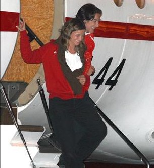 Mercedes García y Pilar Bauza, las dos cooperantes liberadas ayer en Somalia tras una semana de secuestro han llegado a las 20.30 horas a la base aérea de Torrejón de Ardoz, donde han sido recibidas por los ministros de Exteriores, Miguel Ángel Moratinos, y de Defensa, José Antonio Alonso. En la base militar esperaban también el alcalde de Cuadros (León), Marcos Martínez, -localidad de la que es natural Mercedes García- y el embajador argentino en Madrid, Carlos Bettini. Bettini, el único que ha realizado declaraciones a la prensa, ha afirmado que las dos cooperantes se encuentran bien, aunque Pilar Bauza deberá pasar una revisión médica antes de regresar a Argentina. El representante diplomático, que ha declinado hablar del secuestro por tratarse de una información "privada", ha añadido que la liberación de las dos mujeres ha sido posible gracias a "la influencia de la política" y al papel desempeñado por España, "con la modesta colaboración de la Argentina". La médica española Mercedes García y la enfermera argentina Pilar Bauza, trabajadoras de Médicos sin Fronteras-España (MSF), han llegado en un avión Falcon 900 de las Fuerzas Aéreas Españolas junto a la secretaria de Estado de Cooperación, Leire Pajín, quien el pasado martes se trasladó a Nairobi (Kenia) para acompañarlas en su viaje de regreso. Al descender a la pista, una sonriente Mercedes García ha hecho amago de acercarse a casi el medio centenar de periodistas que se encontraban allí, pero finalmente ha desistido y se ha limitado a saludarlos con las manos. El presidente del Gobierno, José Luis Rodríguez Zapatero, ha hablado personalmente con la médica leonesa Mercedes García durante el vuelo que la ha traído de vuelta a España, conversación en la que le ha comunicado que se encuentra en buen estado, pero cansada tras estar ocho días retenida por un grupo armado somalí. Según informaron fuentes del Gobierno, Mercedes García, que regresa a España junto a la cooperante argentina Pilar Bauza, ha explicado por teléfono a Zapatero que, tras su liberación, lo que desea es ver a su familia y descansar. Además, le ha expresado su agradecimiento por las gestiones efectuadas por el Ejecutivo para poner fin al secuestro, y le ha dado las gracias por su preocupación personal en el caso.