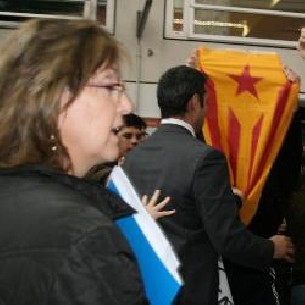 Los estudiantes, que portaban una "estelada" -bandera independentista catalana-, increparon a la candidata popular, trataron de acceder al aula donde iba a pronunciar la conferencia y protagonizaron un altercado con agentes de los Mossos d'Esquadra.