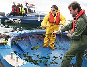 Con un traje de aguas verde y botas apropiadas para la ocasión, a modo de 'grumete', se subió al buque 'Xa vou' para faenar por la ría de Pontevedra y "recoller trasmallos". El propio Quintana ayudó a los profesionales a levantar las redes, que trajeron su recompensa: chocos y lenguados, fundamentalmente.