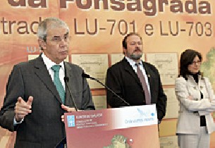 El presidente de la Xunta, Emilio Pérez Touriño, acompañado por la conselleira de Política Territorial, María José Caride, y numerosos cargos institucionales de la provincia de Lugo y el Principado de Asturias, participó en la colocación de la primera piedra de la conocida como ?Y? de A Fonsagrada, en el lugar de Barbeitos, donde se bifurcan las carreteras LU-701 y LU-703, que comunican este municipio lucense con las localidades asturianas de Grandas de Salime y Santa Eulalia de Oscos, respectivamente. Un acto simbólico que supone, en la práctica, el inicio de obras de mejora en 21 kilómetros de calzada, con un presupuesto de 12,4 millones de euros y un plazo de ejecución de 15 meses. Ambas carreteras forman lo que en el VII Cumio Galicia-Asturias, que se celebró en 2006, fue definido como un ?corredor preferente de relación interior? entre ambas comunidades, que los dos presidentes autonómicos se comprometieron a impulsar con actuaciones coordinadas en sus respectivos territorios, para mejorar la comunicación de la Montaña lucense con la costa asturiana y el acceso desde el interior del Principado a la autovía del Noroeste (A-6). En el acto, el presidente de la Xunta hizo referencia a otra importante actuación que permitirá mejorar las comunicaciones entre la Montaña de Lugo y el Principado de Asturias. Pérez Touriño recordó que las obras de mejora de la carretera que comunica Meira con Baralla estarán finalizadas este verano ?después de una inversión superior a los 15 millones de euros-, mientras que la reforma de la vía que conectará esta última localidad con Baleira ?está en fase de redacción de proyecto y contará con un presupuesto de 8 millones de euros?. De hecho, la conselleira de Política Territorial precisó en su intervención que la Xunta de Galicia tiene previsto invertir unos 70 millones de euros para mejorar la movilidad y la seguridad vial en 154 kilómetros de carreteras de titularidad autonómica en la Montaña de Lugo. Caride anunció que las obras en la LU-701 y LU-703 se completarán con la ejecución de otra infraestructura muy demandada, la propia circunvalación de A Fonsagrada, cuyo proyecto estará terminado antes del verano para licitar los trabajos de construcción, que contarán con un presupuesto aproximado de 5 millones de euros. Asimismo, Política Territorial está invirtiendo otros 13 millones de euros en la mejora de la carretera LU-722, entre Becerreá y Navia de Suarna ?33 kiómetros-; 4,5 millones en la LU-723 ?Pontes de Gatín-límite con la provincia de León-, y 15,1 millones en la LU-622, en el tramo entre Quiroga y Folgoso do Courel ?22 kilómetros-. La titular de Política Territorial afirmó que las obras que está ejecutando la Xunta permitirán reducir ?el tiempo de los viajes? desde los distintos puntos de la Montaña de Lugo, pero, sobre todo, ?mejorarán la seguridad de la circulación?. En ese sentido, también recordó que en los proyectos para mejorar estas vías ya se incluye la colocación de sistemas de protección para los motoristas, dada la alta siniestralidad, con consecuencias muy graves para los usuarios de este tipo de vehículos. Por su parte, Pérez Touriño subrayó que las obras para mejorar la comunicación con Asturias ?expresan la cooperación y la unión de esfuerzos entre dos comunidades que comparten principios? y son la respuesta al compromiso ?adquirido en 2006 para superar las barreras de dos territorios que forman parte de la misma realidad?.