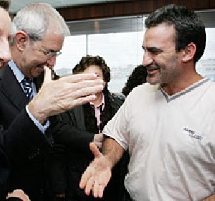 A su llegada, fueron recibidos por el presidente de la Xunta, Emilio Pérez Touriño; el delegado del Gobierno en Galicia, Manuel Ameijeiras; y la conselleira de Pesca, Carmen Gallego. Además, esperaban a los marineros del atunero vasco medio centenar de familiares.