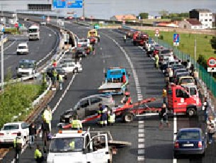 Unos 30 vehículos se vieron implicados esta mañana, sobre las 8,45 horas, en un accidente de tráfico que consistió en una colisión múltiple en el tramo de la AP-9 entre A Coruña y Ferrol, a su paso por el término municipal de Neda.
