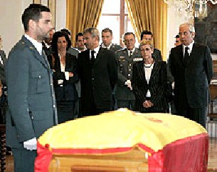Minutos antes de las diez de la mañana, la vicepresidenta primera, María Teresa Fernández de la Vega; la ministra de Educación, Política Social y Deporte, Mercedes Cabrera Calvo Sotelo, el presidente del Tribunal Supremo y del CGPJ, Francisco José Hernando y la presidenta del Tribunal Constitucional, María Emilia Casas, salían del edificio del Congreso para aguardar, en la escalinata, la salida del féretro.