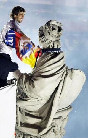 El capitán del Real Madrid, Raúl González Blanco, coronó a La Cibeles con una bufanda y dos banderas del equipo blanco para festejar el trigésimo primer título de Liga del equipo blanco. Raúl subió a la pasarela preparada para la ocasión, besó a la Diosa, le colocó la bufanda y ondeó una bandera del Real Madrid y de España antes de ponérsela con mimo también en el cuello. Después también le situó otra grande más del Real Madrid como estandarte en el brazo.