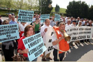 A los 200 marineros y pescadores de Burela (Lugo) y A Guarda (Pontevedra) se unieron los representantes de los ocho puertos de la comunidad que integran la Plataforma en Defensa del Sector Pesquero: Vigo, A Guarda, Ribeira, Muros, A Coruña, Cariño, Celeiro y Burela. Esta organización, creada en abril y todavía en proceso de constitución, también acoge a armadores del puerto asturiano de Avilés. Su gerente, Conchi Ortega, asegura representar a 200 empresas gallegas, asturianas y cántabras del sector de las flotas de arrastre de litoral, palangre de superficie y artes menores.