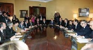 Los partidos políticos con representación parlamentaria y los agentes sociales escenificaron en el Congreso la unidad de los demócratas frente al desafío terrorista de ETA, puesto en evidencia por el atentado cometido esta madrugada contra la casa cuartel de Legutiano (Álava). Esta vez no hubo comparecencias separadas de los distintos partidos, sino que todos juntos respaldaron la lectura de una declaración institucional. En el texto, que fue leído por el portavoz del Grupo Socialista, José Antonio Alonso, se asegura que, con el atentado de anoche, "ETA vuelve a desafiar a los demócratas", pero se deja claro que "los terroristas jamás conseguirán sus objetivos" y que "no doblegarán" a los demócratas en el empeño de acabar con la organización terrorista ni en la defensa del Estado de Derecho. "A los autores de este atentado y al resto de terroristas sólo les espera la aplicación de la ley, la aplicación policial y el ejercicio de la Justicia", avisan los firmantes. Derrota de ETA Además, se resalta que todas las organizaciones políticas y sociales reiteran su "más profunda condena" y su "rechazo más enérgico" al atentado, al que se responde con "unidad y firmeza". "Los firmantes vamos a seguir defendiendo la vida y la libertad y vamos a combatir con coraje y fortaleza democrática a la organización terrorista ETA hasta derrotarla definitivamente, a través de la fuerza exclusiva del Estado de Derecho", se señala. Las organizaciones políticas y los agentes sociales expresan además su condolencia a la familia del guardia civil asesinado -"una víctima inocente que se encontraba cumpliendo con su deber de proteger la vida y los derechos de todos los ciudadanos"- y manifiestan su deseo de que los heridos se recuperen cuanto antes. Ese reconocimiento se hace extensivo a toda la Guardia Civil "por la labor abnegada que realizada cada día y por el sacrificio permanente en defensa del Estado de Derecho", y al conjunto de las Fuerzas y Cuerpos de Seguridad del estado, "a través de los cuales se conseguirá que los asesinos de Juan Manuel Piñuel sean detenidos para que caiga sobre ellos todo el peso de la Justicia". Concentraciones Por último se llama a la ciudadanía a responder "democrática y serenamente" ante este crimen uniéndose este jueves a las concentraciones convocadas por la Federación Española de Municipios y Provincias (FEMP) y a las movilizaciones que las fuerzas políticas convoquen en próximos días en el País Vasco. Los firmantes de la declaración son por parte de los partidos políticos PSOE, PP, CiU, PNV, IU-ICV, ERC, BNG, CC, UPyD y Na-Bai, de las patronales CEOE y CEPYME y de los sindicatos UGT, CCOO y USO, prácticamente el mismo abanico representativo de anteriores respuestas al terrorismo de ETA. La diferencia es que esta vez todos los representantes políticos y los agentes sociales comparecieron juntos en público, algo que no sucedía desde hacía años. No hubo siquiera conferencias de prensa individuales, como sucedió en el asesinato del ex concejal socialista de Mondragón Isaías Carrasco, ocurrido en plena campaña electoral.