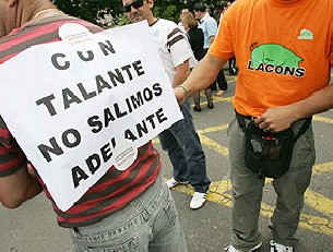 Los participantes recorrieron las calles compostelanas, desde la plaza del Obradoiro hasta la sede de la Xunta, lanzando bengalas y petardos, además de corear consignas en las que pidieron la actuación del presidente gallego, Emilio Pérez Touriño, la dimisión de la conselleira de Pesca, Carmen Gallego.