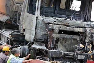 Dos camiones de la empresa Excavaciones Expano de Pontevedra, que trabaja en las obras de construcción de la autovía Santiago/Noia, ardieron la pasada madrugada en un posible sabotaje en el que quedaron dos aparatos incendiarios sin explotar.