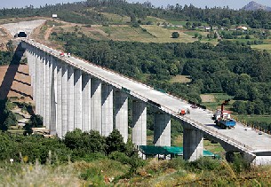 El viaducto de O Eixo, uno de los elementos más singulares del tramo Boqueixón-Santiago del AVE, ha dado un nuevo paso hacia su conclusión, tras finalizarse la ejecución del tablero o plataforma superior, según informa Adif. El viaducto, que salva el valle del Rego de Arins, próximo a Santiago de Compostela, tiene una longitud de 1.224 metros y cuenta con vigas que oscilan desde los 8,5 a los 82 metros de altura.