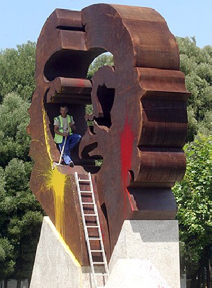 La polémica sigue envolviendo la estatua del Che levantada en una rotonda de Oleiros. Tras las protestas de los vecinos por el alto coste de este "homenaje" al revolucionario cubano, 180.000 euros, ahora ha sido víctima del vandalismo. Este miércoles amanecía con grandes manchas rojas y amarillas.