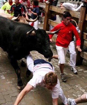 Cinco mozos resultaron heridos este lunes en Pamplona en el último encierro de las Fiestas de San Fermín, que contó con los toros de la ganadería gaditana de Núñez del Cuvillo. Tres de los heridos fueron trasladados al Hospital de Navarra, según declaraciones a Televisión Española del director médico del centro, el doctor Ignacio Yurss.