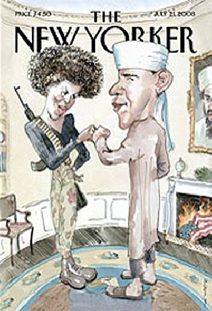 La revista The New Yorker ha herido la sensibilidad de los seguidores de Barack Obama, al caricaturizar al candidato demócrata en la portada de su próximo número con túnica blanca y turbante junto a su esposa Michelle que lleva un AK-47. La revista explicó que el artista Barry Blitt quiso "satirizar en la portada el uso de tácticas de miedo y de desinformación utilizadas en la campaña electoral para provocar que descarrile la campaña de Obama". Sin embargo, el entorno de Obama no ha visto la gracia detrás de la caricatura, que muestra al senador afroamericano y su esposa en un salón en el que cuelga un cuadro de Osama bin Laden. En el fondo, arde una bandera estadounidense en una chimenea. La campaña de Obama ha reaccionado inmediatamente y ha dicho que la portada de la publicación es de "mal gusto y ofensiva". "The New Yorker podría pensar, como un empleado de su equipo nos ha explicado, que la portada es un sátira de la caricatura que los críticos del ala derecha han intentado crear del senador Obama, pero la mayoría de los lectores la verán como de mal gusto y ofensiva; y nosotros estamos de acuerdo", afirmó su portavoz Bill Burton. La campaña de su rival republicano, John McCain, se solidarizó con el senador de Illinois al afirmar en un correo electrónico que está de acuerdo con Burton: la portada "es de mal gusto y ofensiva". La portada del New Yorker se hace eco de una polémica que surgió en febrero cuando salió a la luz pública una fotografía de Obama en la que se ve al senador vestido de traje típico somalí. La foto, tomada en 2006 durante un viaje de Obama a Kenia, el país natal de su padre, muestra al senador afroamericano ataviado con un turbante y una túnica blanca. Entonces también circuló el rumor acerca de que Obama es musulmán, algo que el senador ha desmentido en numerosas ocasiones.