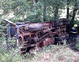 El vehículo había volcado lateralmente sobre el río y vertió buena parte de las 6 toneladas de alquitrán líquido que portaba, que fueron a parar al cauce de este río, si bien dada la escasa agua que llevaba, la mancha negra no llegó a alcanzar al río Furelo, del que es afluente, y que se encuentra a tres kilómetros del lugar del siniestro.