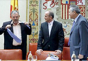 Lo de Pedro María Azpiazu, del PNV, y vicepresidente primero de la Comisión, ha sido todo un gesto: la llevaba puesta y se la ha quitado delante de las cámaras y los fotógrafos de prensa.