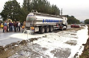 Un grupo formado por medio centenar de ganaderos derramó unos 25.000 litros de leche en la salida de la autovía A-6 (A Coruña-Madrid), a la altura de la localidad lucense de Outeiro de Rei. El transporte de la empresa lusa "A Fornecedora" procedía de la zona de Negrelos (Barcelos), cerca de Oporto, y tenía como destino la planta de envasado de la Corporación Alimentaria Peñasanta (C.A.P.S.A) ?propietaria de la marcha Larsa-, ubicada en el lugar de Robra -en ese mismo municipio de Lugo-, a poco más de tres kilómetros del lugar en el que se produjo el incidente. Este acto de protesta fue organizado por los tres sindicatos mayoritarios en el sector primario gallego -Xóvenes Agricultores (XX.AA), Unións Agrarias (UU.AA) y Sindicato Labrego Galego (SLG)- para manifestar su oposición a la importación masiva de leche foránea por parte de las industrias, con la intención de rebajar el precio de la materia prima en el mercado gallego. Para evitar que la presencia de los sindicalistas pudiese alertar a los responsables de la propia fábrica o que el conductor del camión cambiase su ruta habitual, los afiliados de Unións Agrarias se concentraron a primera hora de la mañana en la salida de la autovía en Nadela, mientras que los miembros del SLG y de Xóvenes Agricultores los esperaban en Outeiro de Rei, unos quince kilómetros más adelante. En cualquier caso, los manifestantes no exhibieron en ningún momento una actitud violenta. Simplemente, pararon el camión, situados detrás de una gran pancarta en la que se pedía ?un precio digno para la leche gallega?, y abrieron las válvulas de la cisterna para derramar su contenido. El propio conductor luso, Américo Santos, reconoció que lleva haciendo esta ruta ?casi a diario? desde hace unos cuatro años, pero hasta hoy no se había encontrado nunca ?con ningún problema?. Aunque los manifestantes optaron por vacíar un camión procedente de Portugal, responsables de los tres sindicatos convocantes afirmaron en Outeiro de Rei que el principal problema para los ganaderos gallegos es la importación de leche que están realizando las industrias desde Francia ?porque la producción del país luso es mucho menor-, para desestabilizar el mercado gallego y justificar una nueva bajada de precios en origen. El secretario de Acción Sindical de UU.AA, Javier Iglesias, afirmó que la Interprofesional Láctea Francesa está ?muy organizada? y utiliza este tipo de prácticas para regular los excedentes de producción de su mercado. Según la información que maneja este sindicato, los productores galos están exportando leche por debajo de los costes de producción, de forma que solucionan sus problemas y desestabilizan la situación del país vecino. Así, aclaró, a las industrias les resulta más barato comprar la materia prima en Francia, aunque tengan que transportarla cientos de kilómetros. Por su parte, el coordinador de Sectores Gandeiros del SLG, Xabier Gómez Santiso, recordó que en las Aduanas sólo se realiza un control sobre el volumen de importaciones, pero no sobre las cualidades de la materia prima comprada. Por ello, piensa que las industrias están adquiriendo esa leche a precios bajos aunque presente ?unas condiciones sanitarias dudosas y nadie pueda garantizar su calidad?. En ese sentido, Gómez Santiso también recordó que las industrias "realizaron más compras en el país galo durante esta campaña que en ninguna otra", mientras que el secretario xeral de XX.AA, Francisco Bello, cifró el volumen de importaciones en un 30% de la producción, o lo que es lo mismo en unos 3 millones de toneladas al año. Asimismo, los tres responsables sindicales coincidieron en afirmar que las industrias están utilizando estas importaciones a bajo coste para presionar a los ganaderos gallegos, con constantes amenazas sobre nuevas bajadas de precio o anunciando que dejarán rutas de recogida de leche en Galicia. Precios y nuevas protestas Francisco Bello subrayó que este acto de protesta no es más que un aviso, porque los sindicatos no descartan nuevas medidas de presión ?si las industrias no aceptan sentarse en una mesa para hablar de precios dignos en este sector?. De hecho, recordó que estas prácticas no afectan únicamente a la leche líquida, sino también a los productos elaborados, por lo que las próximas actuaciones sindicales podrían centrarse en las empresas de ?distribución?, que avalan con su estrategia comercial el ?dumping? de los productores franceses. Los sindicatos piensan que a estas alturas del año las industrias no pueden ni siquiera plantearse nuevas bajadas en los precios de la leche, con la excusa de que ?tienen los almacenes llenos y de que ha disminuido la demanda?, porque en otoño, históricamente, se produce una bajada en la producción que siempre lleva asociado un aumento en la cotización de la materia prima en origen. Para las organizaciones agrarias no es asumible que ?las industrias batan el récord de importaciones y, al mismo tiempo, estén anunciando que dejarán de recoger leche en Galicia o que bajarán los precios para adecuarse a la situación de mercado?. Javier Iglesias afirmó que estas prácticas ?están asfixiando a los ganaderos gallegos y desequilibrando el mercado interno?, por lo que encontrarán respuesta en la propia acción sindical. Derraman leche de un camión de recogida en Chantada Un camión de recogida de leche de la empresa Taboada S.L fue objeto durante la noche del domingo de lo que puede ser un acto vandálico o una acción reivindicativa de los ganaderos lucenses por los bajos precios de la materia prima en origen. Según fuentes consultadas por AGN, autores desconocidos abrieron las válvulas de la cisterna y derramaron unos 8.000 litros, a la altura de lugar de Bazán, en el municipio de Chantada. Aunque las tres organizaciones agrarias mayoritarias en el sector primario ?XX.AA, UU.AA y SLG- protagonizaron este lunes un suceso similar, al derramar unos 25.000 li
